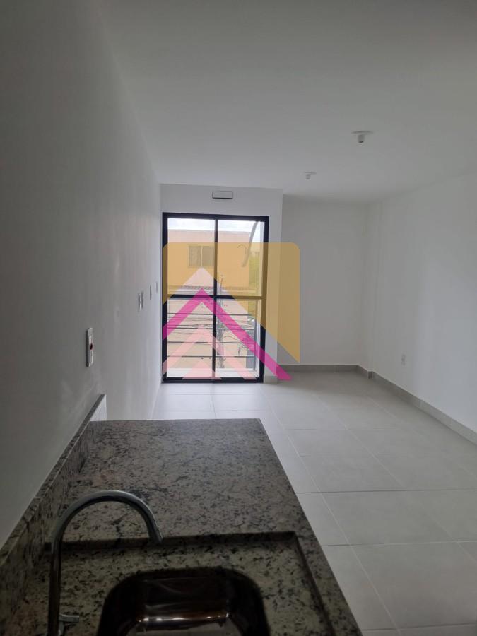O apartamento flat possui uma área de varanda privativa, 01 quarto, banheiro social e cozinha.